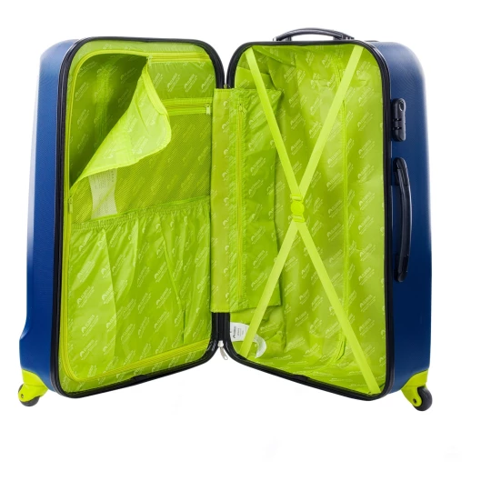 Pojemność: 110 l; wymiary 110 l: 74 x 49 x 29 cm; waga 110 l: 4,5 kg; materiał: 80% ABS, 8% poliester, 8% metal, 2% PVC, 2% nylon; twarda skorupa; zamek szyfrowany kodem; kółka: zakres obrotu 360°; spełnia wymagania bagażu pokładowego; zielona kolorystyka.
