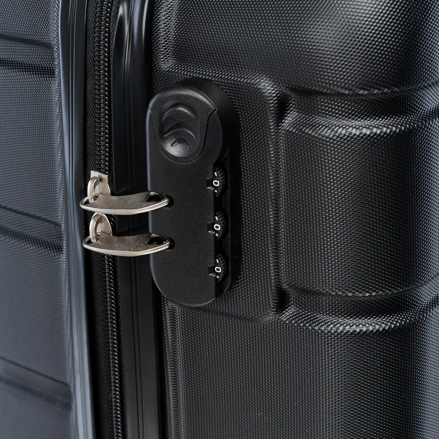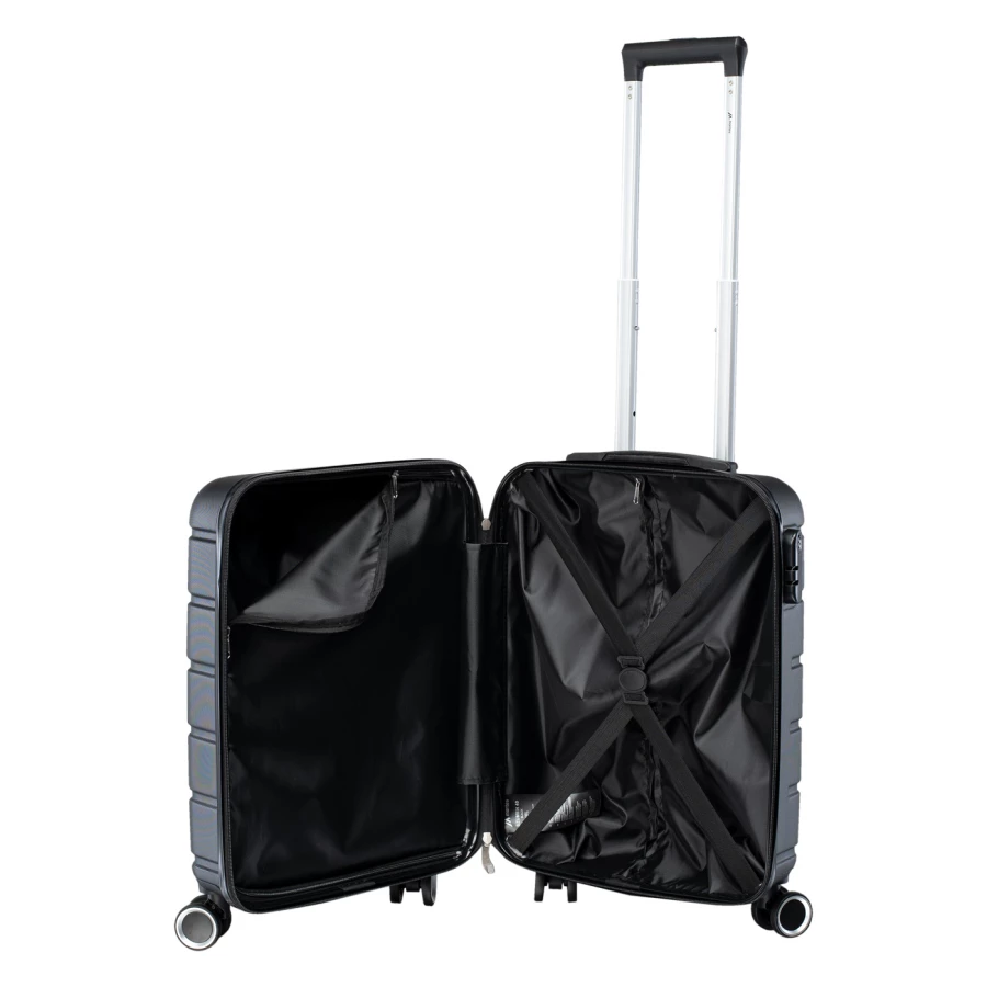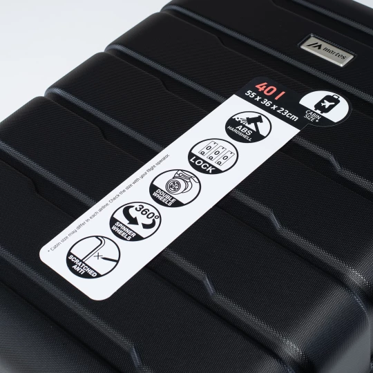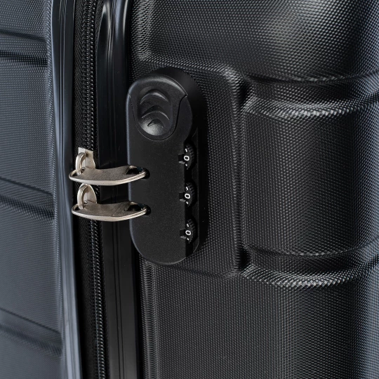 WALIZKA POJEMNOŚĆ: 40 L WYMIARY: 55 x 36 x 23 cm WAGA: 2.5 kg SKŁAD MATERIAŁOWY: 100% ABS SPECYFIKACJA: - TWARDA SKORUPA - ODPORNA NA ZARYSOWANIA - ZAMEK SZYFROWANY KODEM - KÓŁKA: ZAKRES OBROTU 360° - ŁATWY UCHWYT