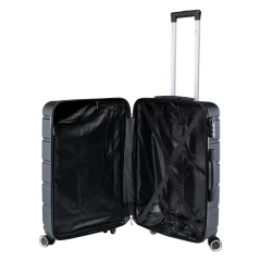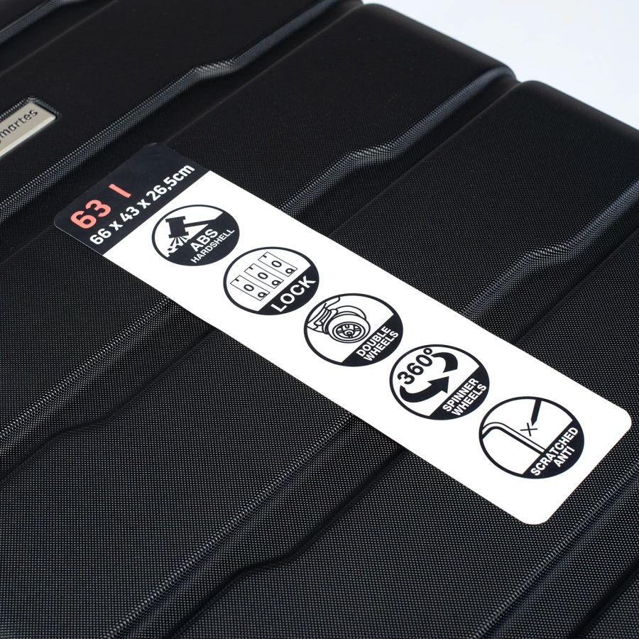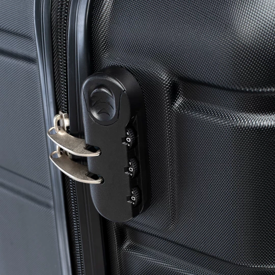 WALIZKA POJEMNOŚĆ: 63 L WYMIARY: 66 x 43 x 26.5 cm WAGA: 3.2 kg SKŁAD MATERIAŁOWY: 100% ABS SPECYFIKACJA: - TWARDA SKORUPA - ODPORNA NA ZARYSOWANIA - ZAMEK SZYFROWANY KODEM - KÓŁKA: ZAKRES OBROTU 360° - ŁATWY UCHWYT