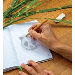 "Wieczny" ołówek, bambusowy trzon, dzięki wykorzystaniu specjalnej wolnościerającej się grafitowej końcówki długość pisania ołówka to około 20 000 metrów w porównaniu z tradycyjnym ołówkiem którego długość pisania to około 200 metrów, notatki można zmazać standardową gumką do mazania, ślad węglowy produktu: 0,01 kg CO2