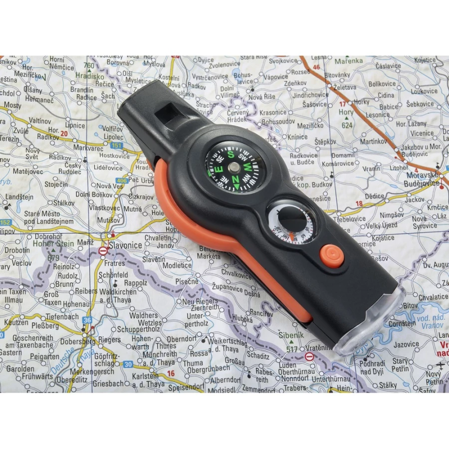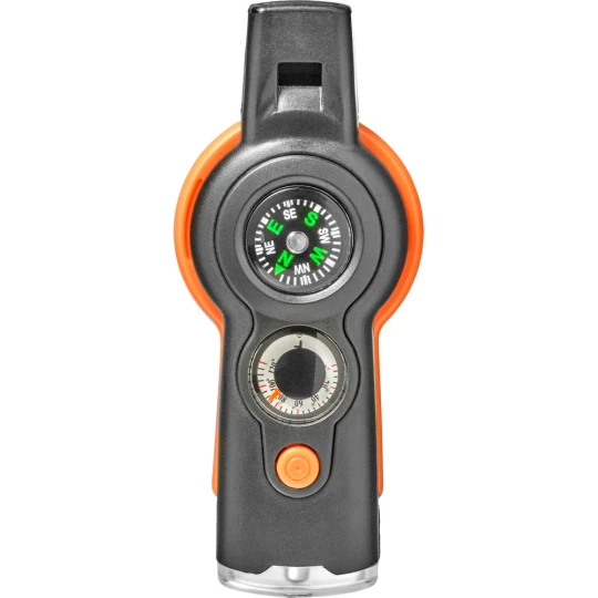 Wielofunkcyjne narzędzie przetrwania, funkcje: gwizdek, kompas, termometr (stopnie F), lampka, lusterko, szkło powiększające i sznurek z zabezpieczeniem