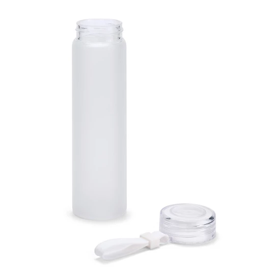 Butelka ze szkła borokrzemianowego z zakrętką wykonaną z AS. Butelka z matowym gradientowym wykończeniem i silikonowym uchwytem na zakrętce. Pojemność do 470 mL. Dostarczany w pudełku. ø60 x 210 mm