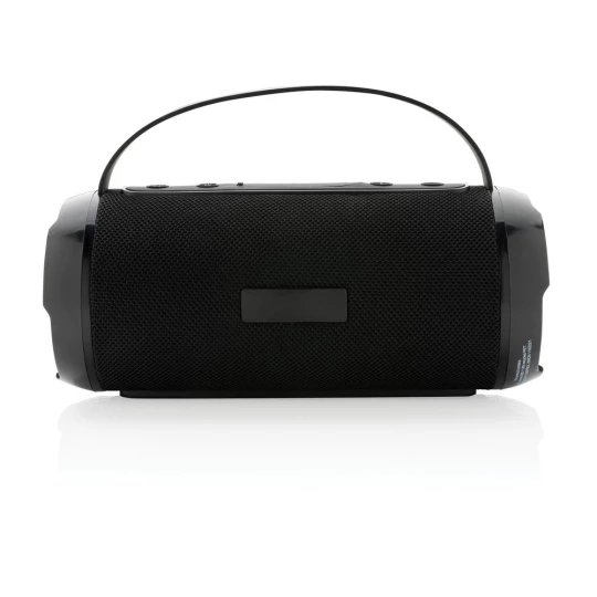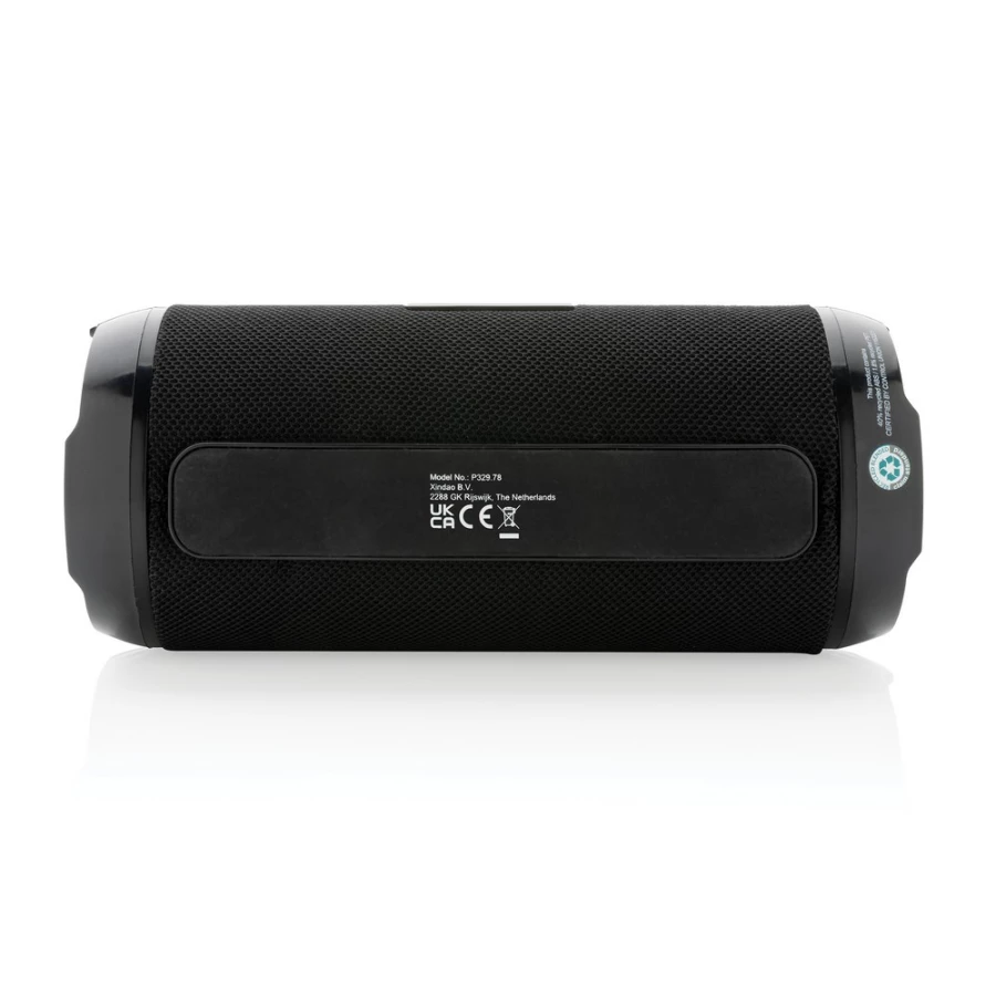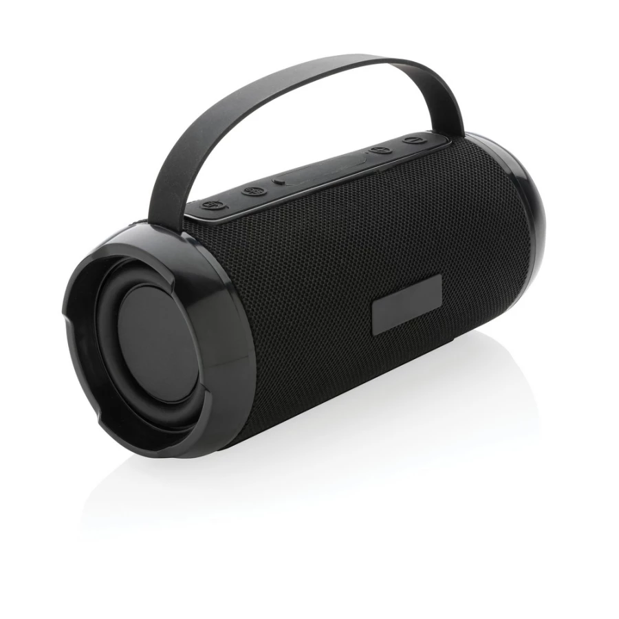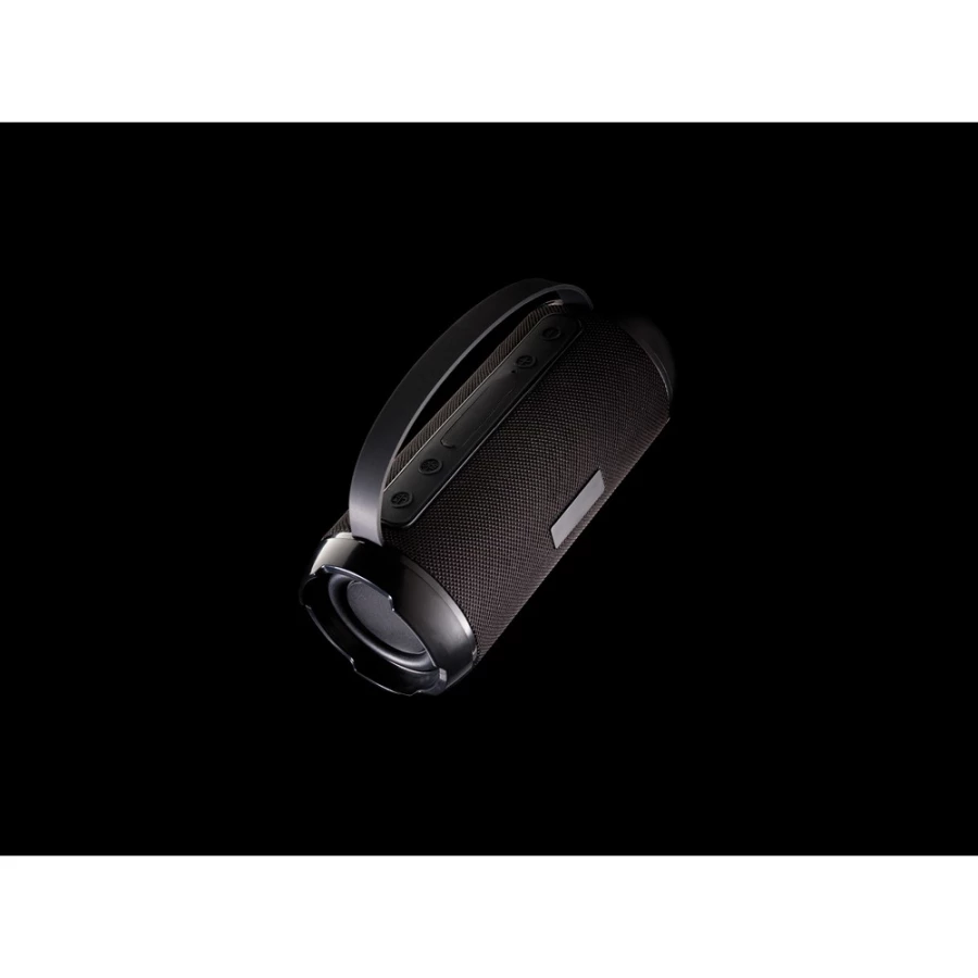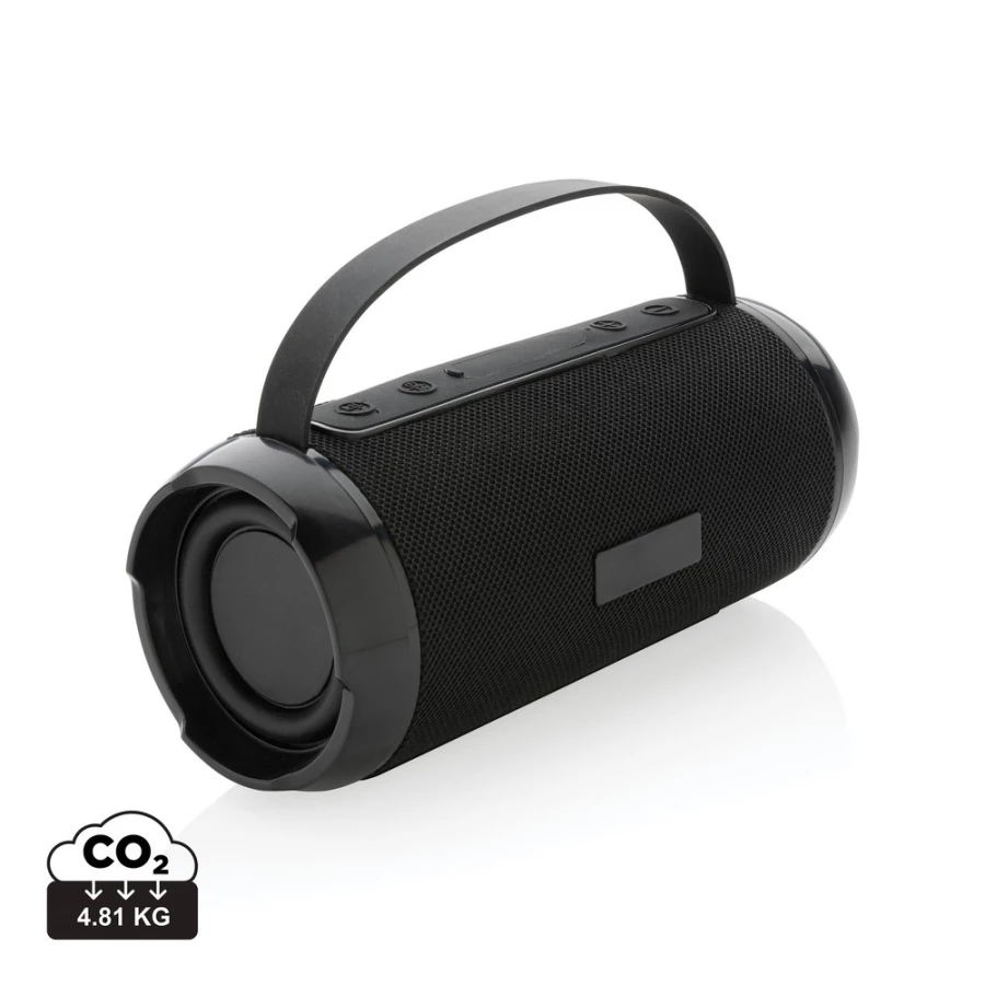 Głośnik bezprzewodowy 6W BT 5.0, wodoodporny IPX4, mikrofon, funkcja odbierania połączeń, wbudowany akumulator o pojemności 1200 mAh umożliwia odtwarzanie do 6 godzin, zasięg do 10m, wykonany z ABS i PET z recyklingu z certyfikatem RCS, całkowita zawartość materiałów z recyklingu obliczona na podstawie wagi całkowitej przedmiotu: 41%, kabel do ładowania z TPE z recyklingu w komplecie, w pudełku z papieru kraftowego