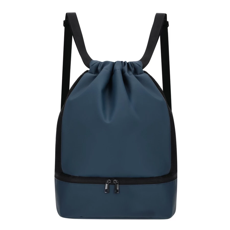 Worek z szerokimi paskami i 4 przegrodami, posiada dedykowaną przegrodę na buty, główna przegroda z siateczkowymi bokami, produkt wykonany z PU