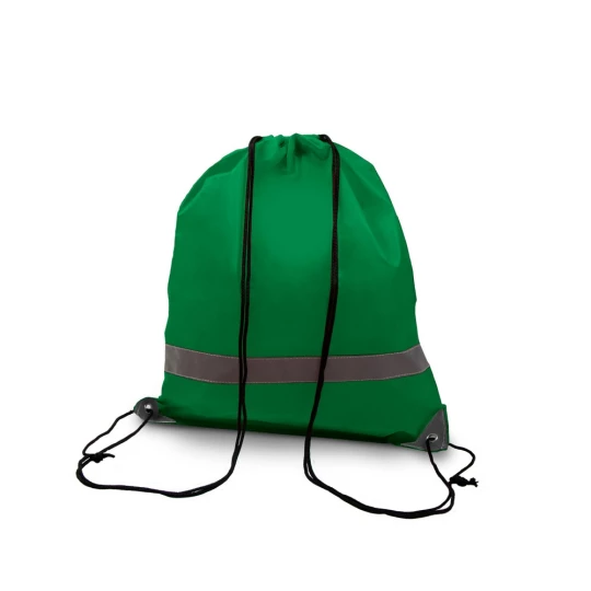 Worek ze sznurkiem umożliwiającym noszenie na plecach, wzmocnione narożniki zmniejszają ryzyko rozdarcia materiału, pomieści drobne zakupy lub strój sportowy na siłownię, na froncie połyskliwy pasek, produkt wykonany z poliestru 190T. Wyłącznie do użytku promocyjnego.