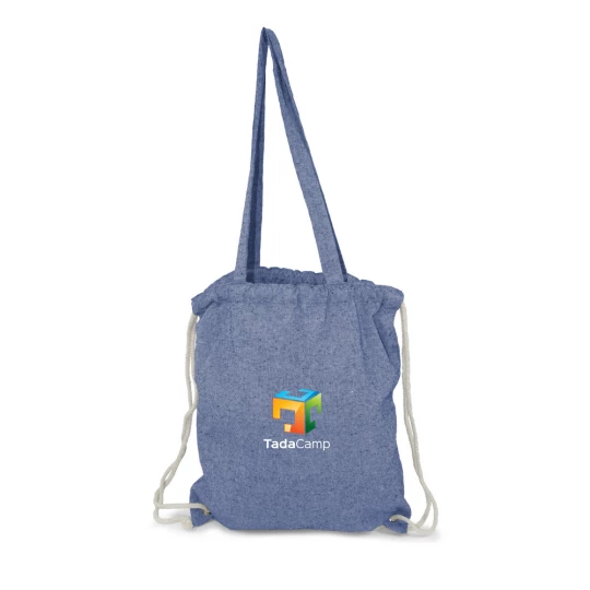 Worek ze sznurkiem i torba na zakupy 2 w 1, sznurki umożliwiają noszenie na plecach a długie uchwyty pozwalają nosić worek na ramieniu, pomieści drobne zakupy lub strój sportowy na siłownię, produkt wykonany z bawełny z recyklingu o gramaturze 140 g/m2