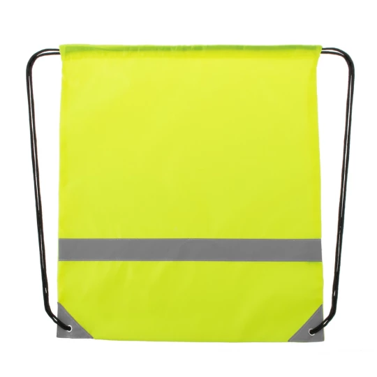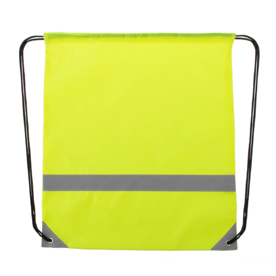 Worek ze sznurkiem umożliwiającym noszenie na plecach, wzmocnione narożniki zmniejszają ryzyko rozdarcia materiału, pomieści drobne zakupy lub strój sportowy na siłownię, na froncie połyskliwy pasek, produkt wykonany z poliestru 190T. Wyłącznie do użytku promocyjnego.
