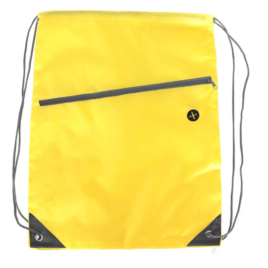 Worek ze sznurkiem umożliwiającym noszenie na plecach, wzmocnione narożniki zmniejszają ryzyko rozdarcia materiału, pomieści drobne zakupy lub strój sportowy na siłownię, posiada przednią kieszeń zamykaną na zamek błyskawiczny oraz otwór na kabel od słuchawek lub power banku (nie są dołączone), produkt wykonany z poliestru 210D