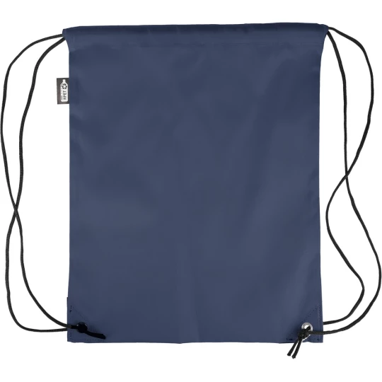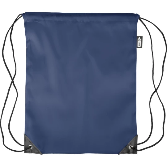 Worek ze sznurkiem, czarny nylonowy sznurek po obu stronach, zamknięcie na ściągacz, pojemność: 5L, maksymalne obciążenie: 7 kg, ikona RPET na metce, produkt wykonany z poliestru RPET 210D z dwoma czarnymi narożnikami z PU z przodu i wewnętrznymi szwami