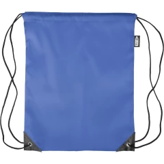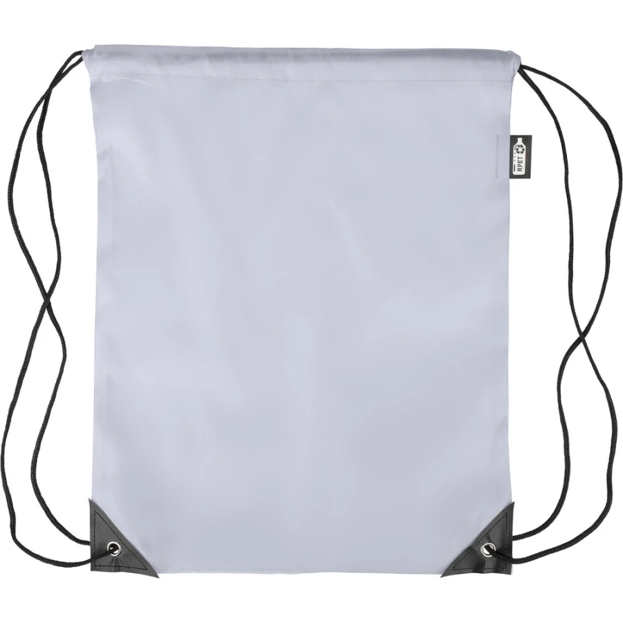 Worek ze sznurkiem, czarny nylonowy sznurek po obu stronach, zamknięcie na ściągacz, pojemność: 5L, maksymalne obciążenie: 7 kg, ikona RPET na metce, produkt wykonany z poliestru RPET 210D z dwoma czarnymi narożnikami z PU z przodu i wewnętrznymi szwami