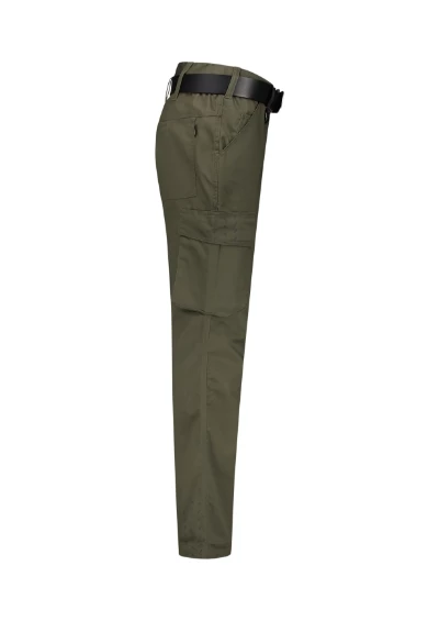 lekki materiał, elastyczne w pasie, podwyższony pas w tylnej części, wielofunkcyjnych kieszeni, zawieszka "D" , elementy odblaskowe, możliwość wydłużenia nogawek, pasek nie jest częścią zestawu, Tricorp kod produktu: 502024