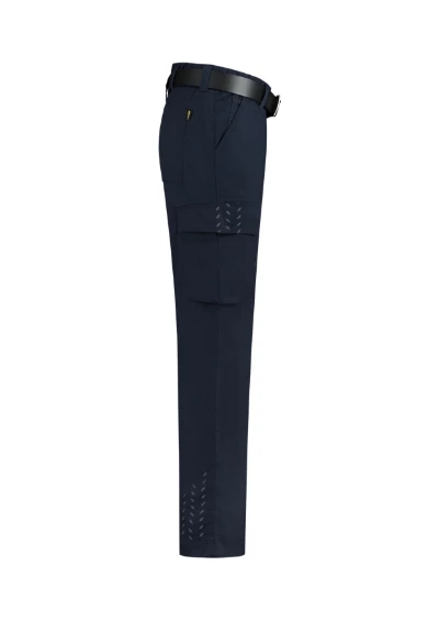 lekki materiał, elastyczne w pasie, podwyższony pas w tylnej części, wielofunkcyjnych kieszeni, zawieszka "D" , elementy odblaskowe, możliwość wydłużenia nogawek, pasek nie jest częścią zestawu, Tricorp kod produktu: 502024
