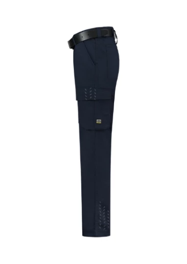 lekki materiał, elastyczne w pasie, podwyższony pas w tylnej części, wielofunkcyjnych kieszeni, zawieszka "D" , elementy odblaskowe, możliwość wydłużenia nogawek, pasek nie jest częścią zestawu, Tricorp kod produktu: 502024