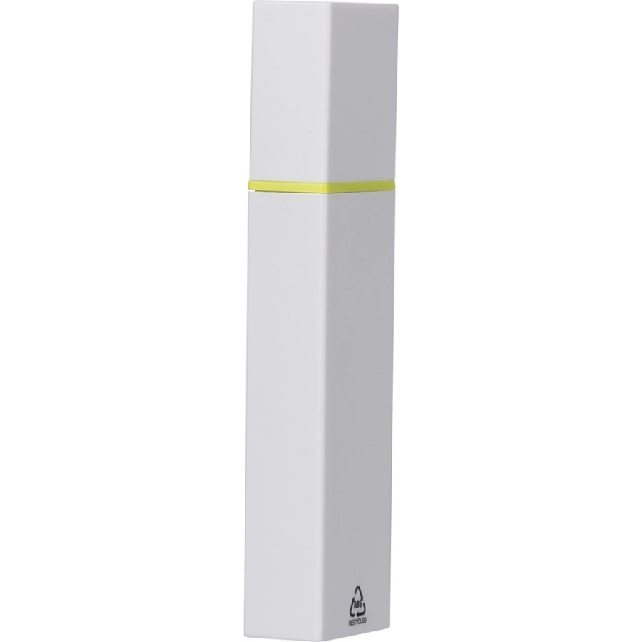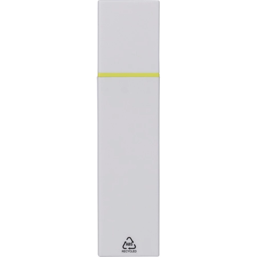 Zakreślacz, biała obudowa, kolorowy detal, zawiera ikonę ABS na produkcie, produkt wykonany z ABS z recyklingu