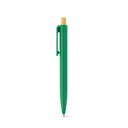 Długopis z recyklingowanego ABS (100% rABS) z bambusową przycisk. Niebieski tusz. Ponieważ produkt jest wykonany z naturalnych materiałów, kolor produktu oraz wynik drukowania mogą się różnić w zależności od produktu. ø11 x 134 mm