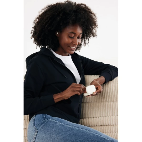 Zatyczki do uszu redukujące hałas z otoczenia, zmniejszają poziom hałasu z zewnątrz o 36dB, 3 końcówki w różnych rozmiarach w komplecie, wykonane z ABS z recyklingu z certyfikatem RCS, całkowita zawartość materiałów z recyklingu obliczona na podstawie wagi całkowitej przedmiotu: 74%