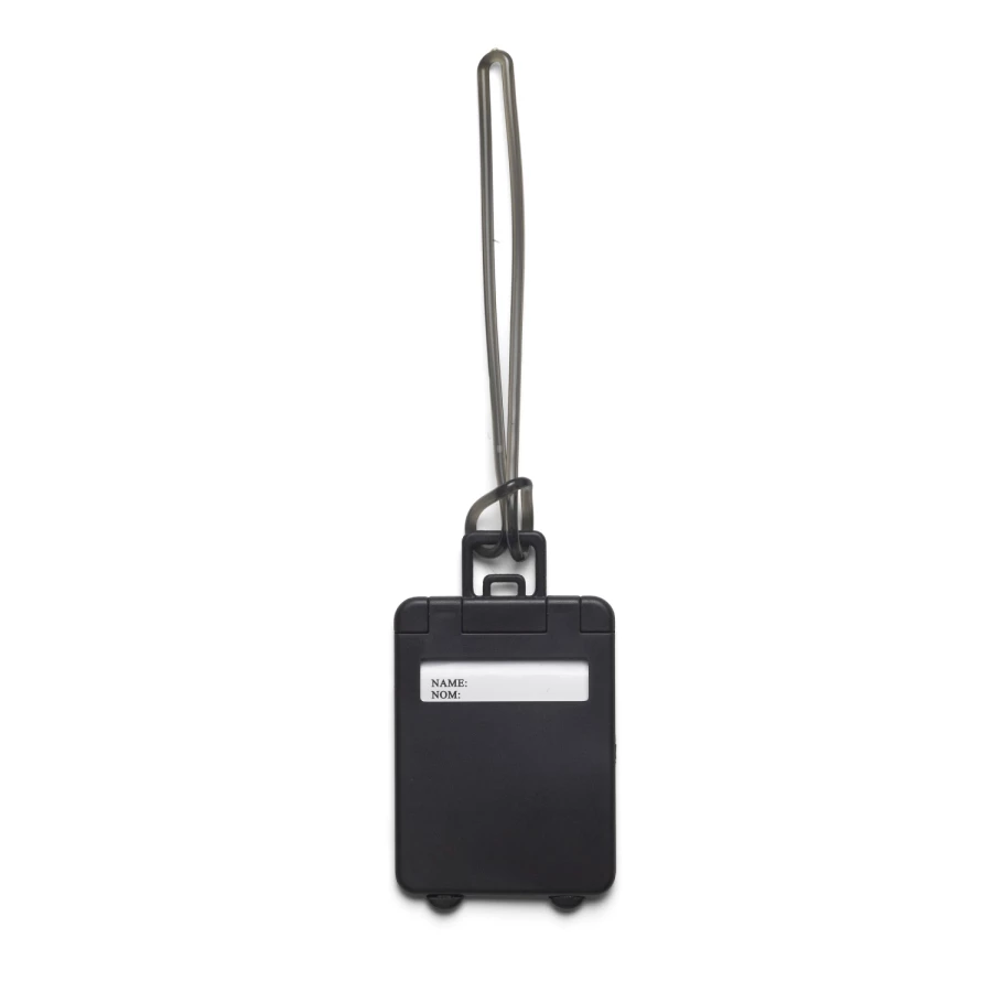 Zawieszka do bagażu w kształcie walizki z uchwytem umożliwiającym przyczepianie do walizki, dużo miejsca na wpisanie danych kontaktowych