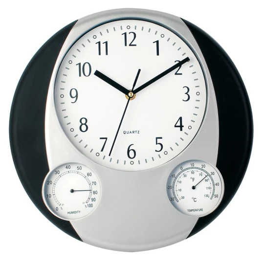 Zegar ścienny, stacja pogodowa z termometrem i wskaźnikiem wilgotności