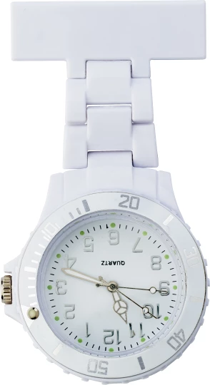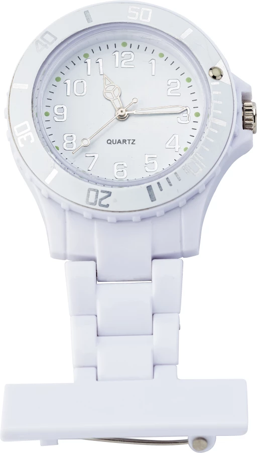Zegarek pielęgniarki ze srebrnymi elementami i agrafką
