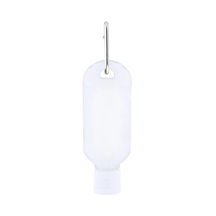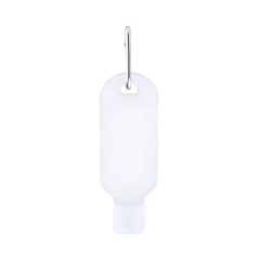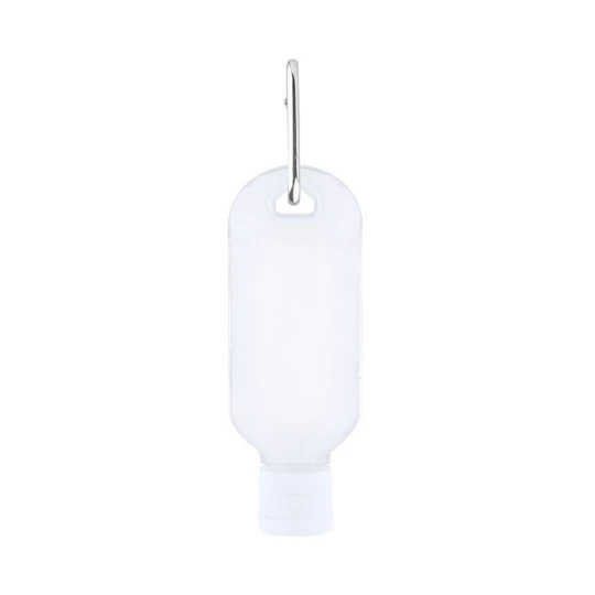 Żel do rąk w półprzezroczystej buteleczce (do wielokrotnego napełniania) z dozownikiem z zamknięciem i karabińczykiem, roztwór o 65% zawartości alkoholu, 30 ml