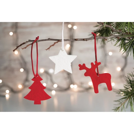 Zestaw filcowych dekoracji świątecznych. Zawiera 3 różne dekoracje. 65 x 70 x 3 mm