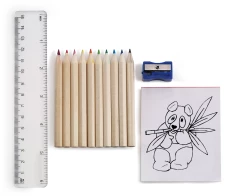 Zestaw do rysowania, 10 kredek, linijka 15 cm, temperówka oraz kolorowanki (ok. 20 obrazków)