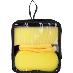 Zestaw do mycia samochodu w pokrowcu, w komplecie: gąbka, gąbka z siateczką i szmatka z mikrofibry (35 x 35 cm)