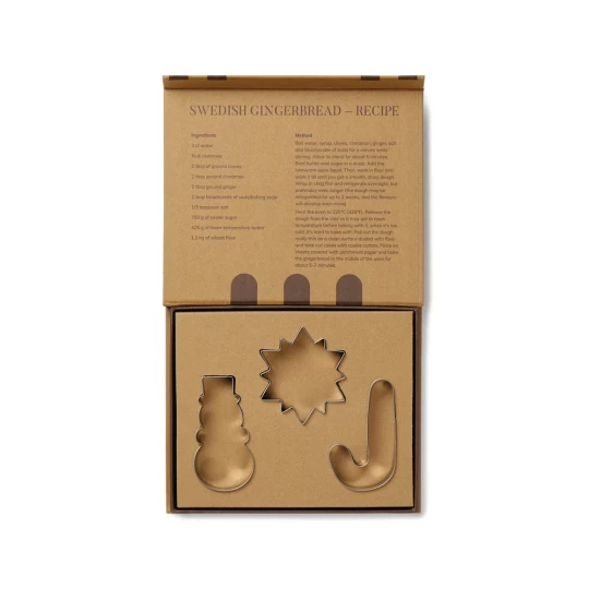 Zestaw foremek do ciastek, 3 różne kształty, wykonane ze stali nierdzewnej, łatwe w czyszczeniu, w pudełku upominkowym, wewnątrz pudełka przepis na szwedzkie ciasteczka imbirowe
