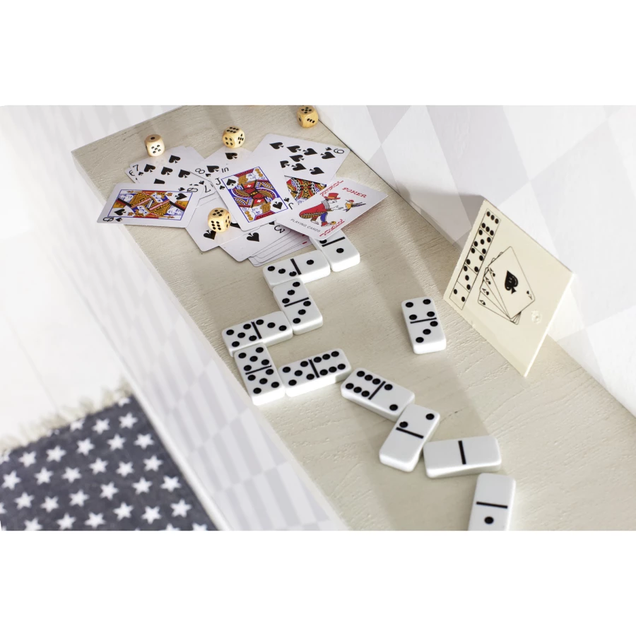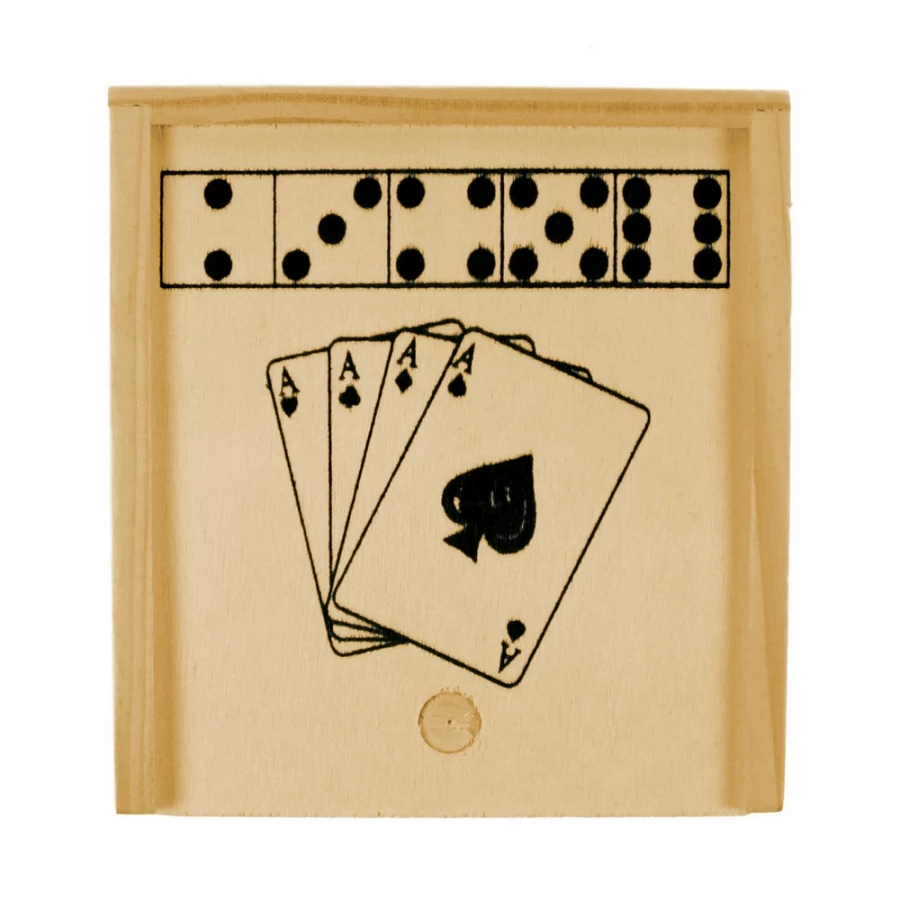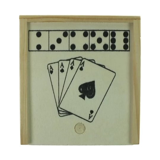 Zestaw gier w drewnianym pudełku: karty i kości