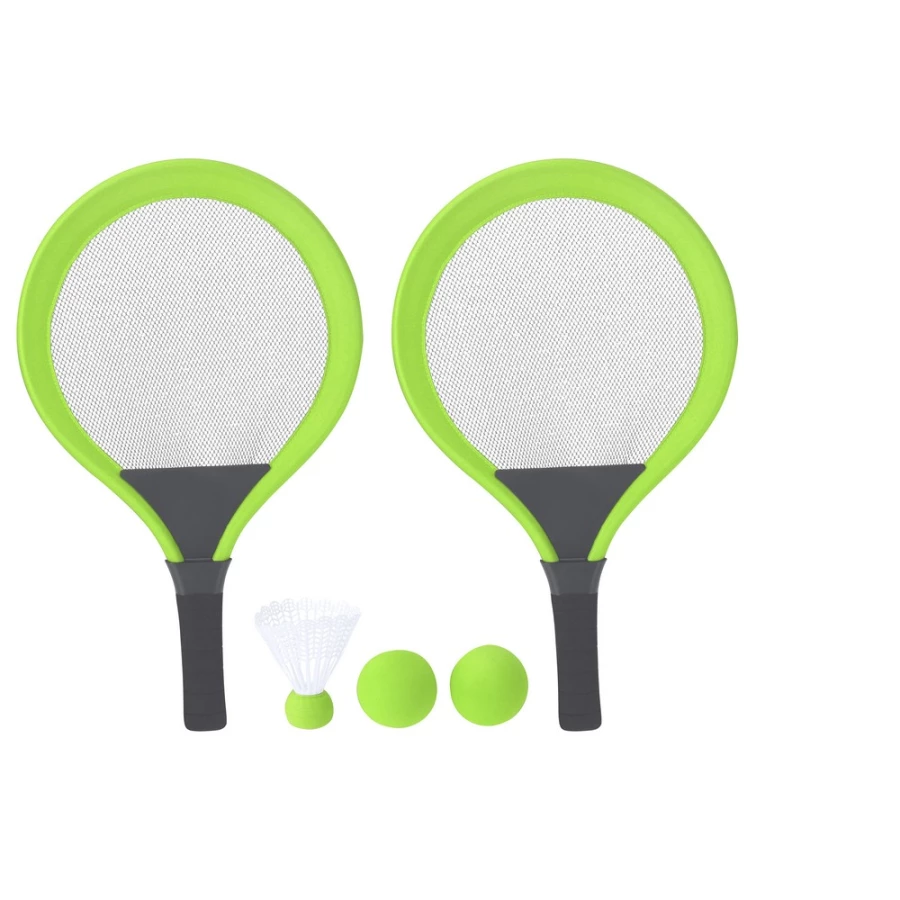 Zestaw gier, idealny na plaży czy w parku, w komplecie 2 rakietki, piłki i lotka, produkt wykonany z PVC i EVA