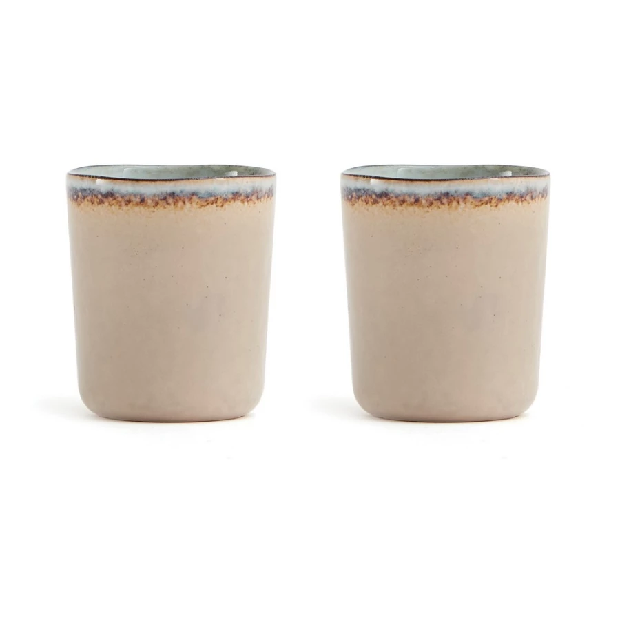 Zestaw kubków 350 ml, 2 el., wykonane z naturalnej kamionki, każdy kubek jest robiony ręcznie dzięki czemu jest niepowtarzalny, można myć w zmywarce i używać w kuchence mikrofalowej