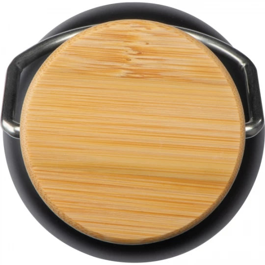 Zestaw zawierający termos próżniowy i dwupoziomowe pudełko na lunch ze sztućcami i z ruchomą przegródką pozwalającą dowolnie dzielić pudełko na 2 komory. Całość spięta gumką. Zestaw wykonany ze stali nierdzewnej, włókien pszennych i bambusa.