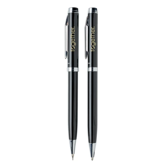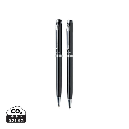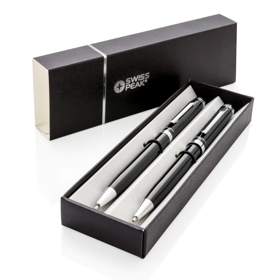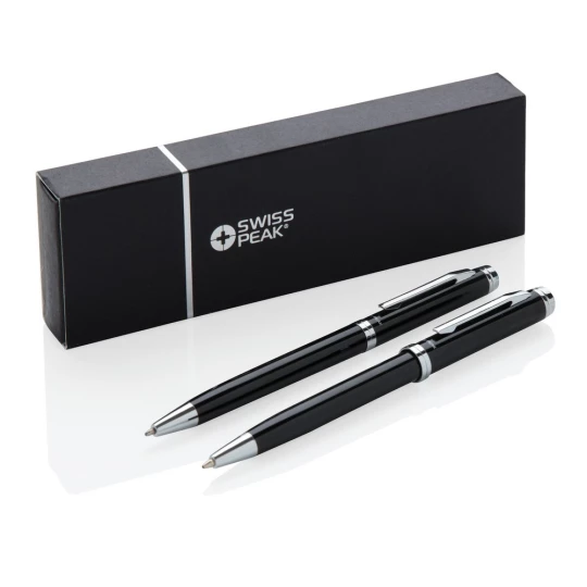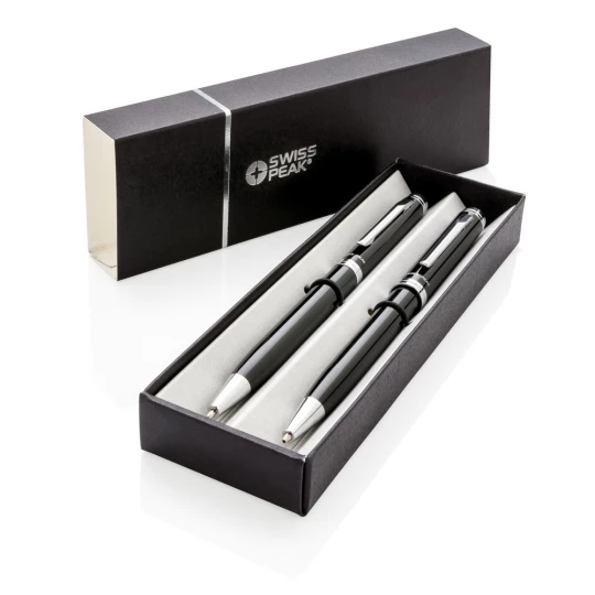 Zestaw piśmienny, długopis i ołówek mechaniczny 0.7 mm wysokiej jakości, niemiecki wkład, długość pisania ok. 1200 m, 3 wkłady do ołówka i ozdobne pudełko Swiss Peak w komplecie, ślad węglowy produktu: 0,21 kg CO2