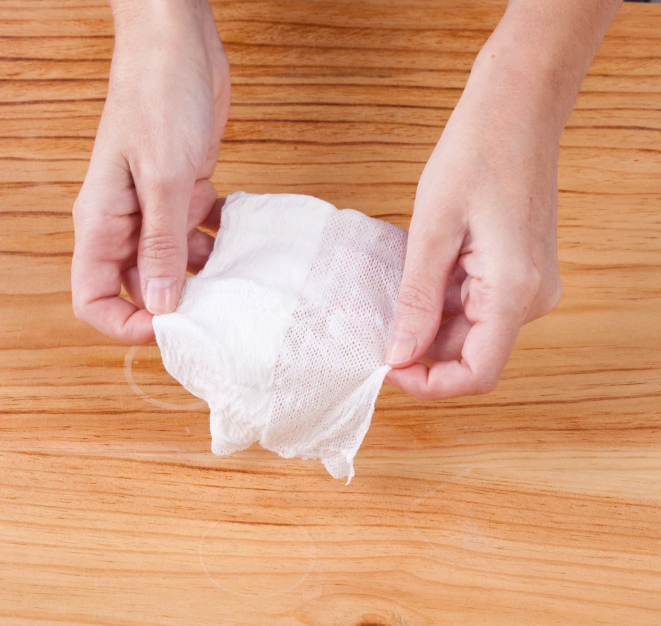 Kompaktowy zestaw ściereczek do rąk w pojemniku, 10 szt., rozłożona ściereczka ma wymiar 23 x 23 cm