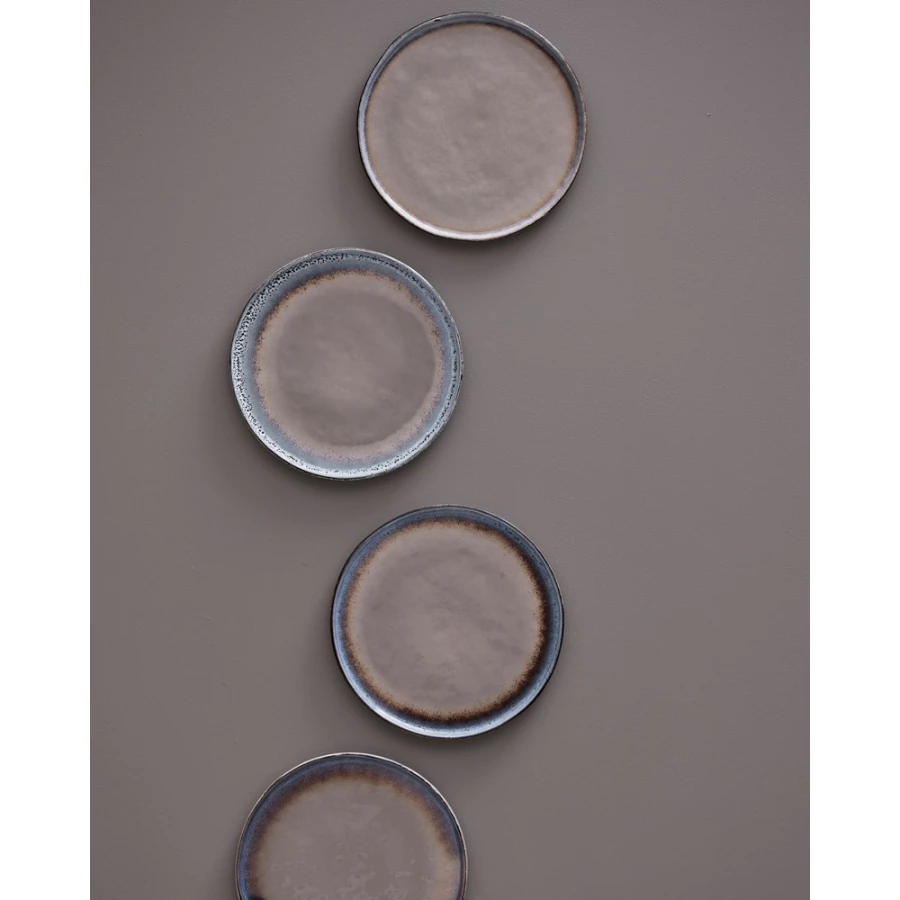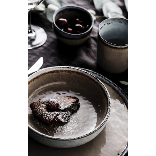 Zestaw talerzy 2 el., wykonane z naturalnej kamionki, każdy talerz jest robiony ręcznie dzięki czemu jest niepowtarzalny, można myć w zmywarce i używać w kuchence mikrofalowej