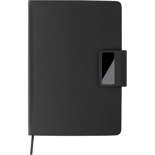 Zestaw upominkowy w ozdobnym pudełku: notatnik, 80 kartek w linie (70 g/m²), magnetyczne zapicie, tasiemka zakładkowa umożliwia wygodne zaznaczanie ostatniej strony lub ważniejszych notatek, długopis w niebieskim kolorze, ikona recyklingu na wszystkich produktach, produkt wykonany z kartonu, PU i poliestru