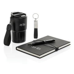 Zestaw upominkowy, długopis i notatnik (160 kremowych stron z papieru z recyklingu), wykonane z materiałów z recyklingu, całkowita zawartość materiałów z recyklingu obliczona na podstawie masy całkowitej produktu: 75%