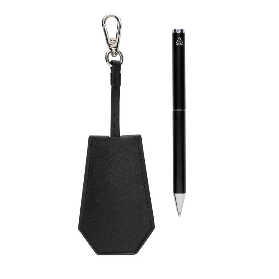 Zestaw upominkowy, brelok, organizer do kluczy, długopis, brelok wykonany z PU z recyklingu, długopis wykonany z aluminium z recyklingu z certyfikatem RCS, całkowita zawartość materiałów z recyklingu obliczona w oparciu o wagę całkowitą przedmiotu: brelok 11%, długopis 8%, w pudełku upominkowym