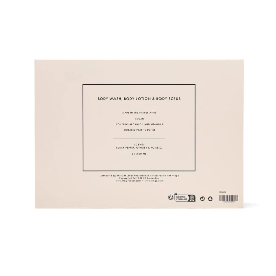 Zestaw kosmetyków 3 el., w komplecie: żel do mycia ciała 200 ml, balsam do ciała 200 ml oraz peeling do ciała 200 ml, ciepły aromat czarnego pieprzy, imbiru i pomelo, w eleganckim pudełku upominkowym
