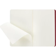 Duży zeszyt MOLESKINE Cahier Journal (ok. A5, large), 80 gładkich stron, miękka okładka z widocznymi przeszyciami na grzbiecie, kieszeń wewnętrzna, 16 kartek z perforacją umożliwiającą wyrwanie na końcu