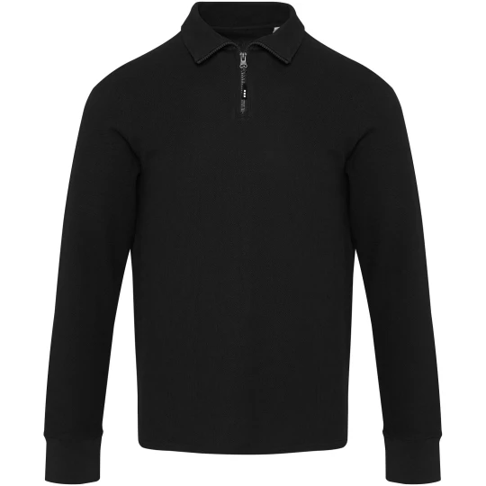 Zeus koszulka unisex z długim rękawem i zamkiem błyskawicznym jest wykonana z w 100% bawełnianej dzianiny piqué o gramaturze 245 g/m² i nadaje się do noszenia przez cały rok. Charakterystyczne detale w formie ściegów nadają jej eleganckie wykończenie, taśma przy dekolcie z tego samego materiału zapewnia trwałość, a boczne rozcięcia z wstawkami z tego samego materiału zwiększają swobodę ruchów. Etykieta nanoszona metodą termotransferu gwarantuje komfort noszenia bez metek. Odzież, wyposażona w technologię identyfikowalności AWARE™, posiada cyfrowy paszport produktu, który gwarantuje przejrzystość i przyjazność dla środowiska.