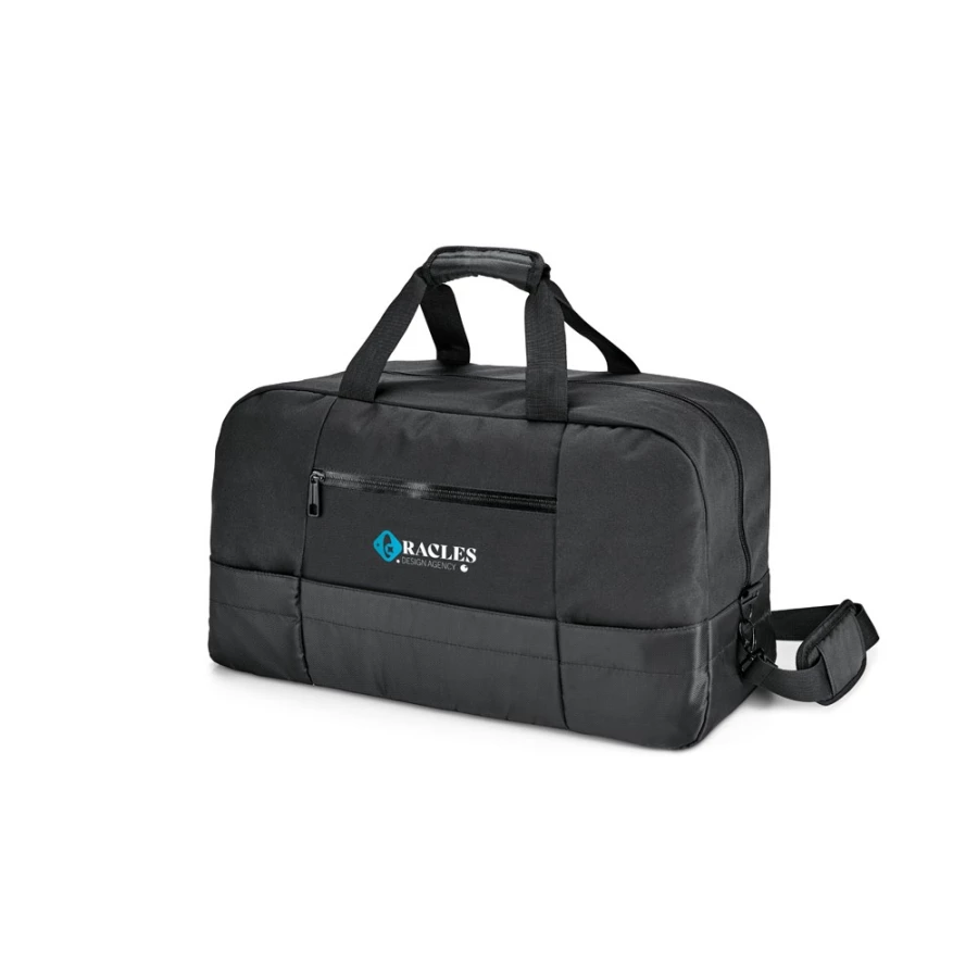 Elegancka torba sportowa, która odzwierciedla minimalistyczny i współczesny styl. Dyskretna i funkcjonalna, gwarantuje elegancję w każdym szczególe i praktyczność w każdej sytuacji.Materiał zewnętrzny: poliester 300D i żakard 840DMateriał wewnętrzny: poliester 210DPojemność (l): 30Komory: 1 komora głównaKieszenie zewnętrzne: 4 kieszenie przednie, dwie z nich zapinane na zamek błyskawicznyDodatkowe cechy: regulowany i odpinany pasek na ramię z wyściełanym wzmocnieniemWymiary: 520 x 300 x 220 mm