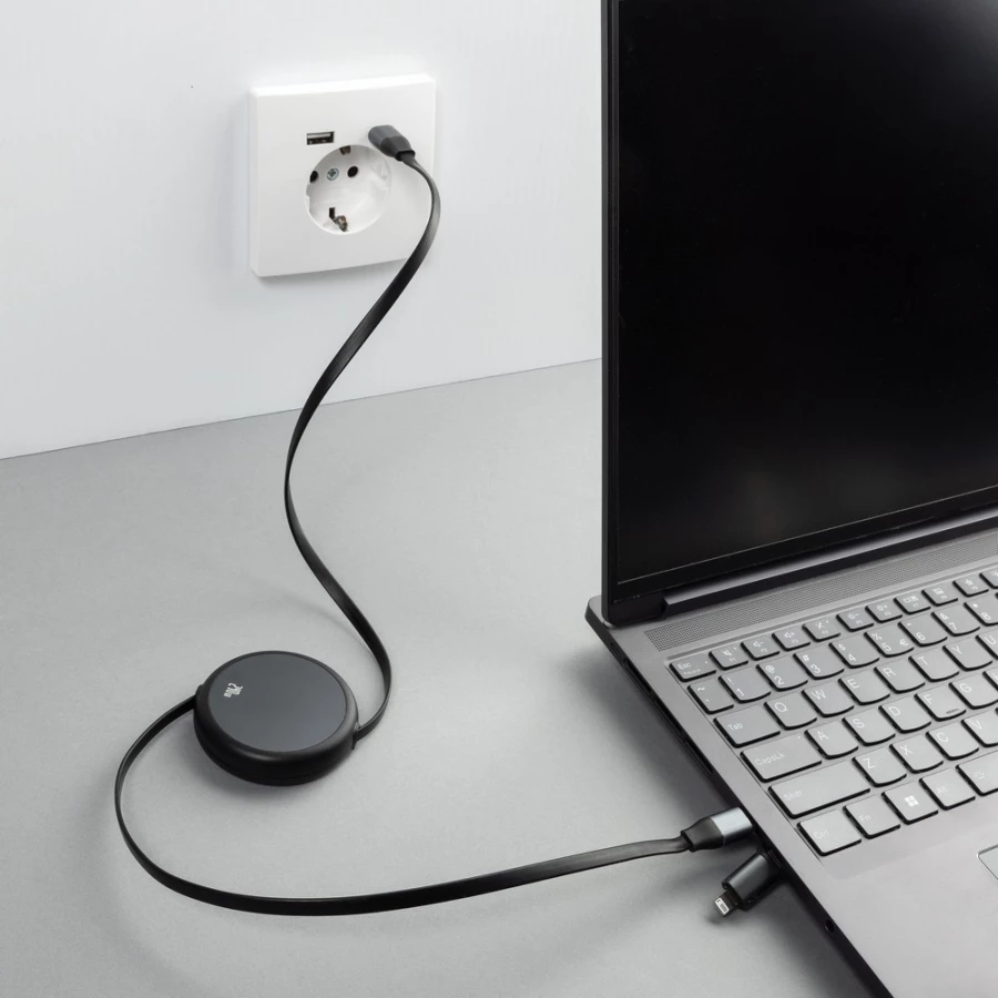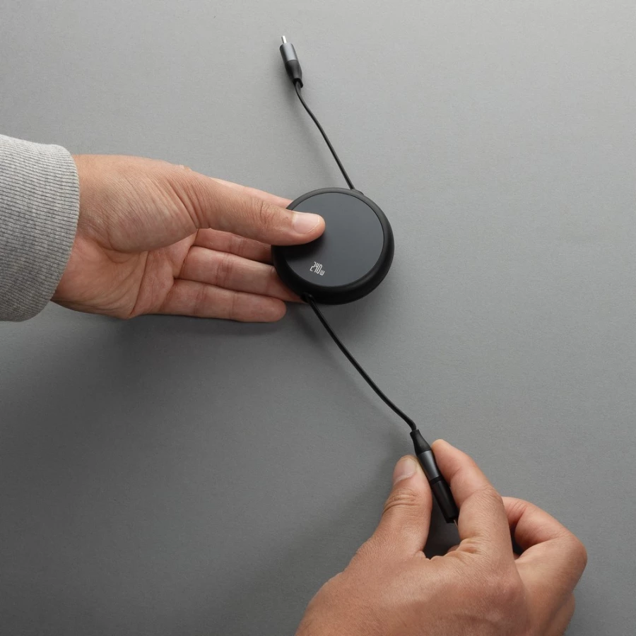 Zwijany kabel do ładowania i synchronizacji 2 w 1, końcówki: 2 x USB-C, iOS, moc ładowania do 240W, obsługuje CarPlay i Android Auto, wykonany z materiałów z recyklingu, całkowita zawartość materiałów z recyklingu obliczona na podstawie masy całkowitej produktu: 69%