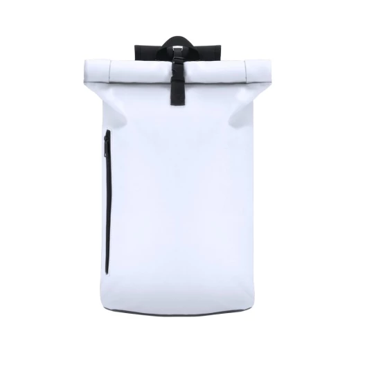 Zwijany plecak na laptopa 15", rozwijalna główna kieszeń zamykana na klamrę, która umożliwia zwiększanie pojemności plecaka oraz lepiej chroni przed czynnikami atmosferycznymi po zwinięciu, miękka przegroda na laptopa, przednia kieszeń na zamek błyskawiczny, miękki tył i regulowane paski na ramię, produkt wykonany z PU