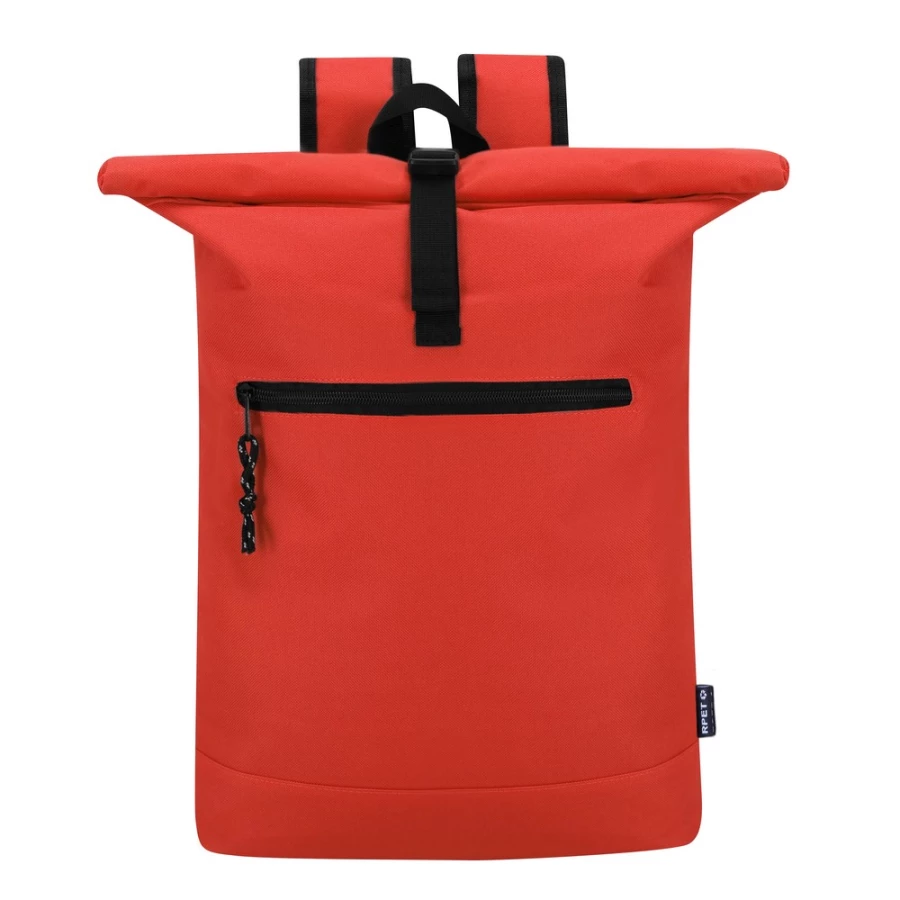 Zwijany plecak na laptopa 15", rozwijalna główna kieszeń zamykana na klamrę, która umożliwia zwiększanie pojemności plecaka oraz lepiej chroni przed czynnikami atmosferycznymi po zwinięciu, miękka przegroda na laptopa, przednia kieszeń na zamek błyskawiczny, miękki tył zwiększający komfort użytkowania i regulowane paski na ramię umożliwiające dopasowanie ich długości do własnych preferencji, produkt wykonany z poliestru 600D RPET