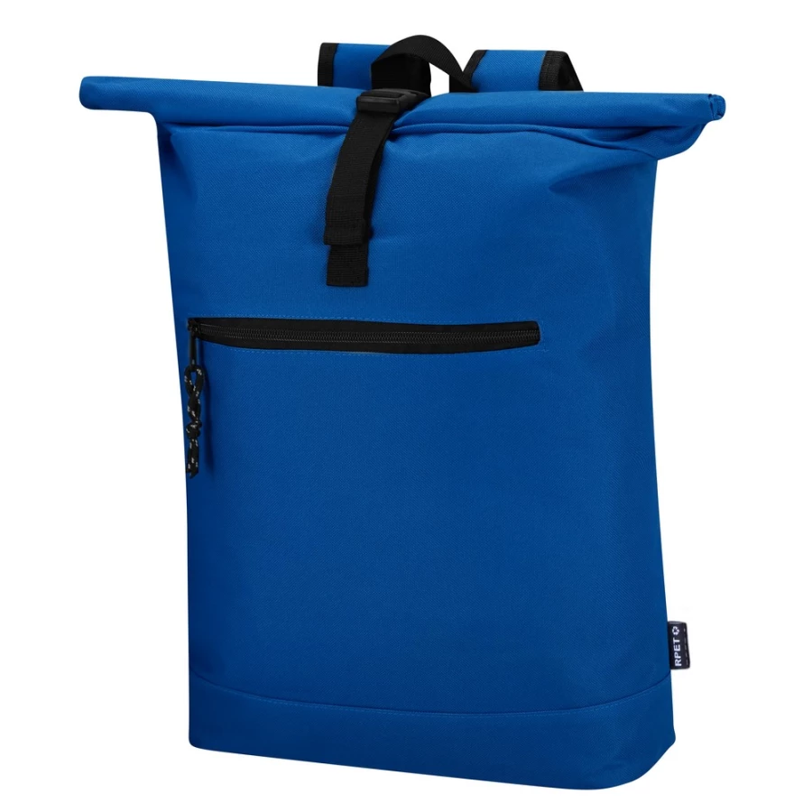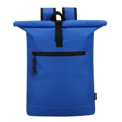 Zwijany plecak na laptopa 15", rozwijalna główna kieszeń zamykana na klamrę, która umożliwia zwiększanie pojemności plecaka oraz lepiej chroni przed czynnikami atmosferycznymi po zwinięciu, miękka przegroda na laptopa, przednia kieszeń na zamek błyskawiczny, miękki tył zwiększający komfort użytkowania i regulowane paski na ramię umożliwiające dopasowanie ich długości do własnych preferencji, produkt wykonany z poliestru 600D RPET